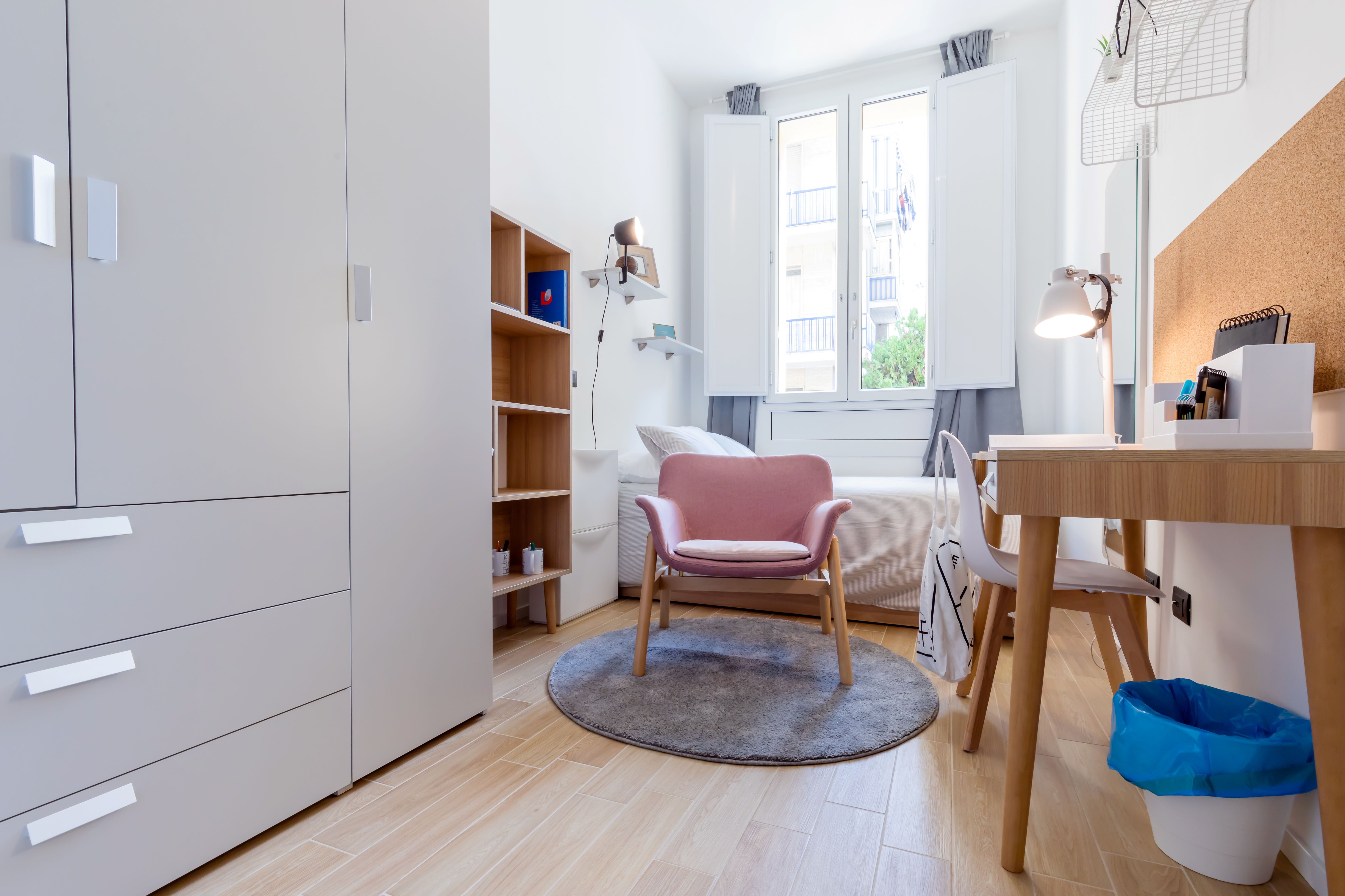 La zona notte è composta da letto matrimoniale e armadio adatto ad accogliere tutti gli effetti personali dell'inquilino, la stanza è dotata inoltre di uno scrittoio e di una boiserie poggia valigia, oltre che di una televisione.