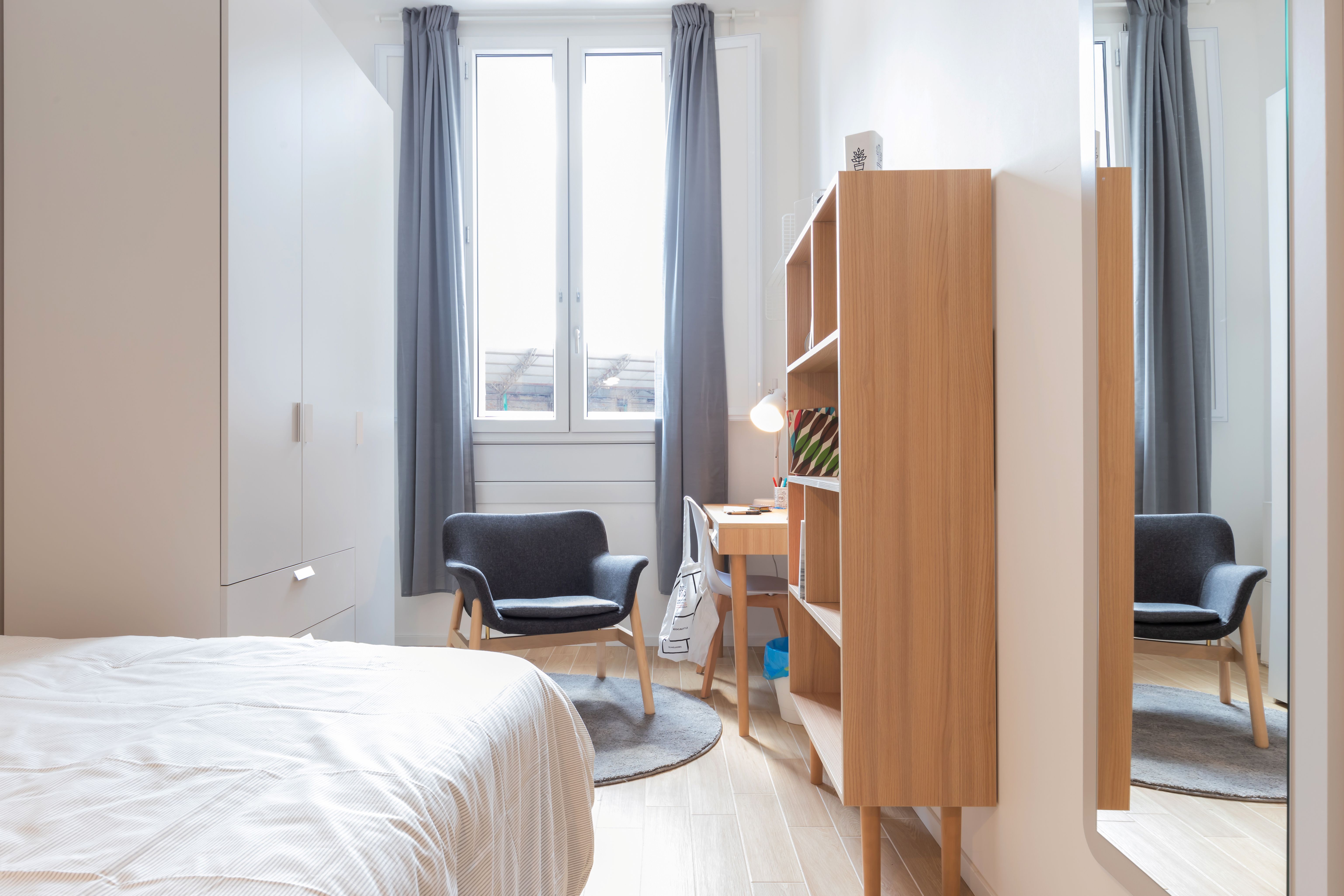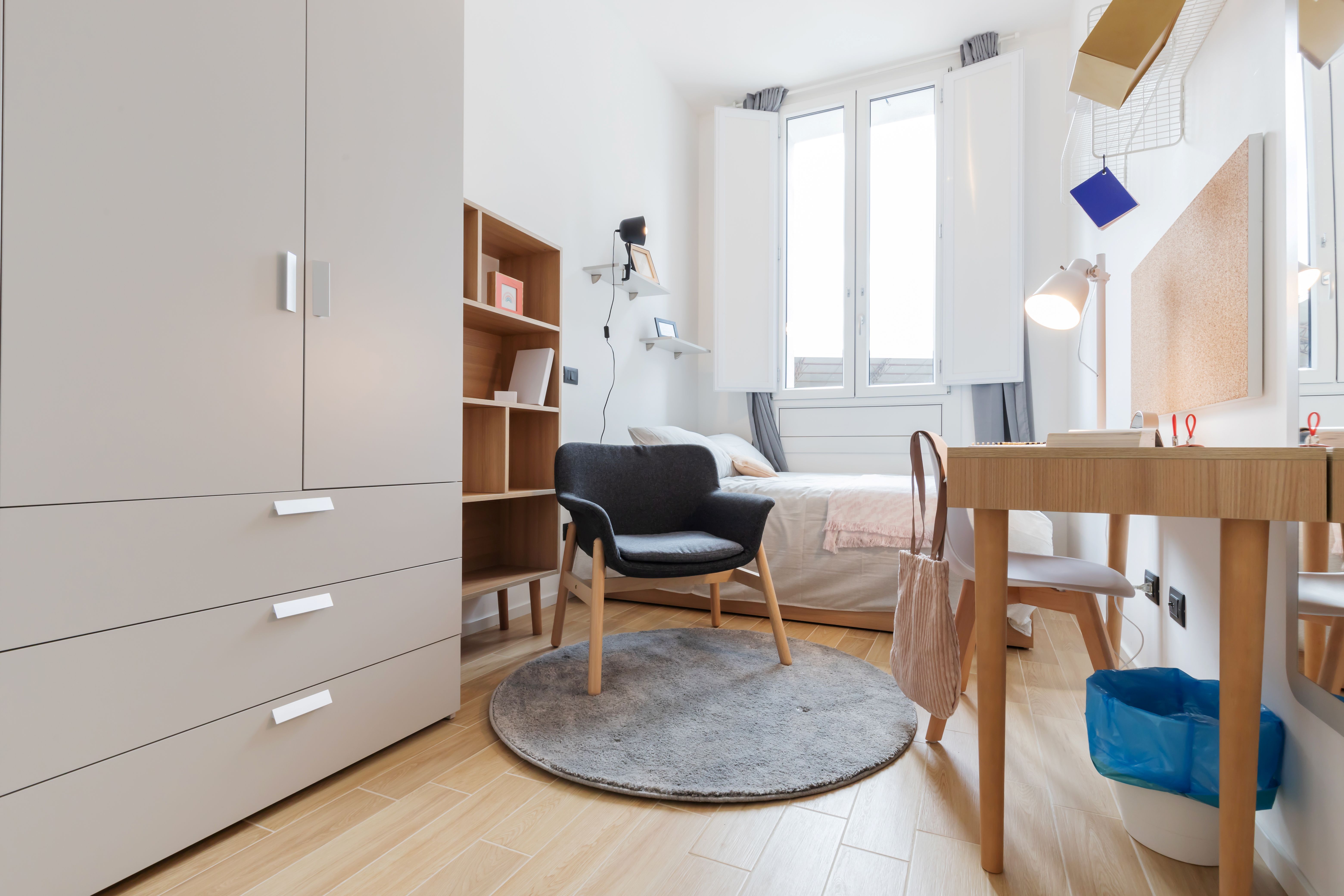 La zona notte è composta da letto matrimoniale e armadio adatto ad accogliere tutti gli effetti personali dell'inquilino, la stanza è dotata inoltre di uno scrittoio e di una boiserie poggia valigia, oltre che di una televisione.