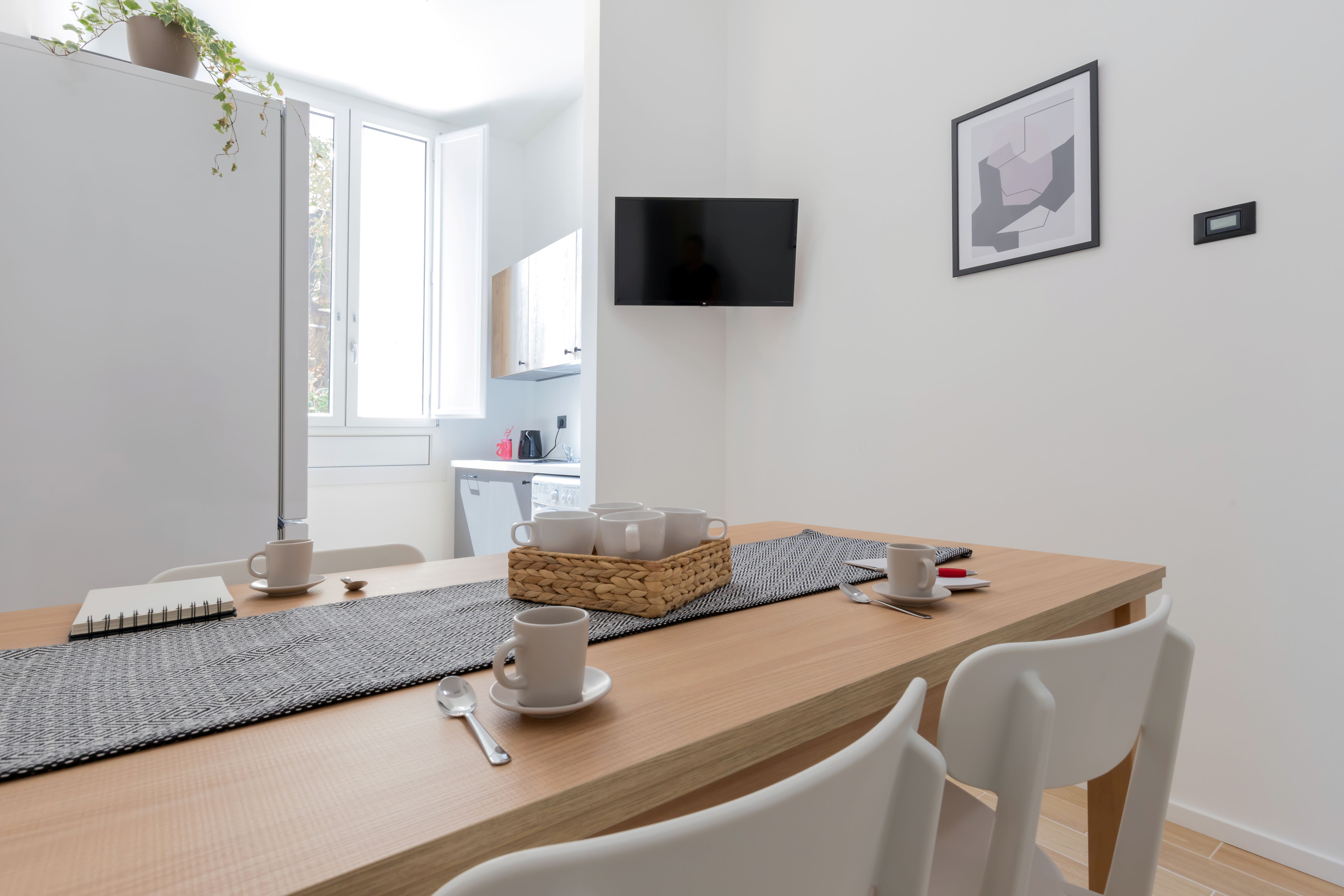 La zona giorno è composta da un angolo TV che comprende un divano/poltroncina e tavolino basso, e da una piccola zona dining.